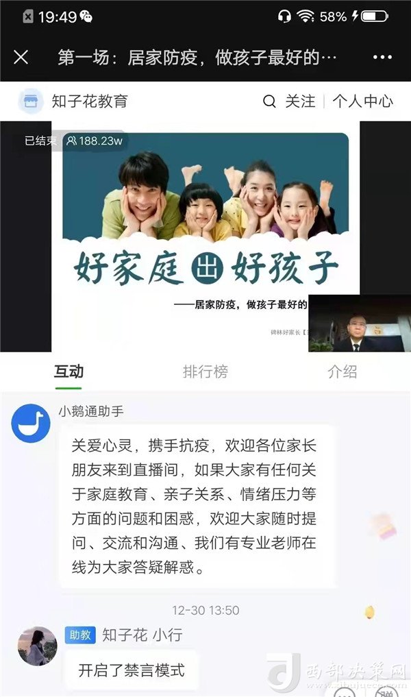 西部決策網(wǎng)訊 面對當前嚴峻的疫情防控形勢,為了貫徹落實渭南潼關縣教科局“停課不停學”的工作部署,潼關縣城關二中全面開展了線上教育教學活動。為了更好的幫助全校師生及學生家長保持平和心態(tài),處理好“停課不停學”中,教師、學生及學生家長可能出現(xiàn)的心理問題,進行有效的心理調試,潼關縣城關二中組織全校師生及學生家長觀看了陜西省教育廳舉辦的《心理健康暨家庭教育》線上直播講座,各位心理專家根據(jù)不同的人群進行了正確有效的心理輔導與科學的指導,為全體師生和學生家長筑起了抗疫“心”防線。