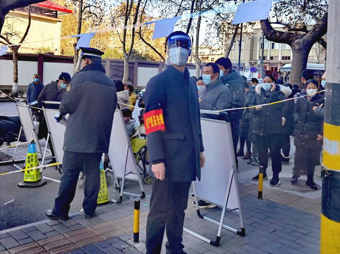 自從12月21日至今,王曉軍幾乎天天深入抗疫一線,以志愿者的身份助力抗疫,從未休息過一天,什么工作都干過,上門核實(shí)業(yè)主家里的人員情況,最近是否都做了核酸,綠碼顯示情況,是否還出去上班,是否有生活困難等等一系列繁瑣細(xì)微的工作,作為總經(jīng)理他在公司運(yùn)籌帷幄,雷厲風(fēng)行,而在這里,他俯首甘為孺子牛,輕輕地敲開萬戶門,耐心詢問,認(rèn)真登記,毫無差漏。小區(qū)巡查時(shí),勸導(dǎo)業(yè)主回家不要下樓,遇到家里有生活方面困難的業(yè)主時(shí),了解情況后勸導(dǎo)回家等侯,然后聯(lián)系物業(yè)或社區(qū)或民警協(xié)調(diào)處理,給業(yè)主回復(fù)。小區(qū)門口值班時(shí),對(duì)進(jìn)出人員嚴(yán)加詢問,除防疫工作人員及民生保障人員持身份證、單位證明、疫情防控指揮部辦公室的證明人員外,一律不許出入,對(duì)門口交接生活保障物資的人員,通過專用通道,保持3米距離,并對(duì)物品進(jìn)行嚴(yán)格酒精消殺,杜絕出現(xiàn)交叉感染。核酸篩查現(xiàn)場維護(hù)秩序時(shí),看到年邁的老者,就主動(dòng)向前扶一把,幫助老人提前插隊(duì)做;遇到打不開綠碼的,就親自幫人操作;遇到間距拉近的就讓他們分開......一天下來嗓子都喊啞了,從21日開始至今,一共進(jìn)行了10輪核酸篩查,他從未缺崗。防護(hù)服不透氣,身上一會(huì)兒熱一會(huì)兒冷,自己本來就戴著一副眼鏡,再加上一個(gè)面罩,外寒內(nèi)熱,眼睛一整天都是模糊的,一天下來腰酸背痛,何況天天如此。在數(shù)九寒天,在危險(xiǎn)面前如果沒有一種精神力量做支撐,普通人恐怕一天也難以堅(jiān)持。我也做過志愿者,穿過傳說中的防護(hù)服,僅僅五個(gè)小時(shí)我都快崩潰了,幸好工作結(jié)束,否則我可能要請(qǐng)假了,所以我感同身受志愿者的艱辛和不易。