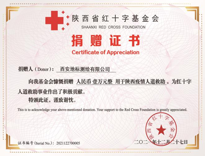 疫情就是命令,防控就是責(zé)任。王曉軍千方百計(jì)聯(lián)系到防疫物資的供應(yīng)商,協(xié)調(diào)出100套防護(hù)服和面罩,新的問題又來了,由于交通管制,他又再三竭力溝通供貨商,防疫物資終于在29日一大早抵達(dá)社區(qū)。社區(qū)人員激動(dòng)地說:“感謝西安地標(biāo)測繪有限公司對(duì)社區(qū)工作的支持,非常感謝王總和貴公司的愛心捐贈(zèng)!”30日又跟隨小區(qū)業(yè)主捐款100元為志愿者購買防疫物資。他說“點(diǎn)滴匯泉涌,眾志能成城。那么多人為我們保駕護(hù)航,負(fù)重前行,我們也想辦法盡一點(diǎn)兒微薄之力。疫情期間國家給予企業(yè)諸多優(yōu)惠政策,現(xiàn)在國家處于危難時(shí)刻,我們定當(dāng)做出貢獻(xiàn),義不容辭。相信在大家的共同努力下,一定能打贏這場疫情‘阻擊戰(zhàn)’”。這個(gè)忠厚樸實(shí)的西北漢子說到了更做到了,他用自己的實(shí)際行動(dòng),心懷感恩,回報(bào)社會(huì),踐行著企業(yè)的社會(huì)情懷和責(zé)任擔(dān)當(dāng)。不止這次疫情,他的愛心捐助數(shù)不勝數(shù),2020年新冠疫情爆發(fā)時(shí)捐款2萬元給陜西省紅十字會(huì)用于西安市新冠疫情防控工作,今年10月又通過陜西省紅十字基金會(huì)為渭南大荔水災(zāi)捐款1萬元用于災(zāi)后重建,還有河南水災(zāi)捐款、水滴籌等,只要看到必須伸出雙手......