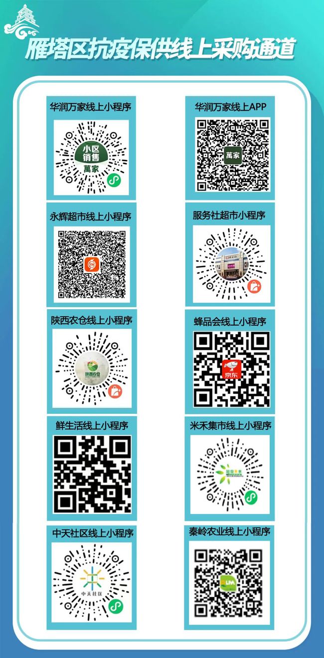 華商網(wǎng)訊 據(jù)微信公眾號(hào)“今日雁塔”消息,雁塔區(qū)督促華潤(rùn)萬(wàn)家、人人樂(lè)、永輝超市等商貿(mào)龍頭企業(yè)加大生活必需品采購(gòu),組織27家保供企業(yè)緊急開通線上配送業(yè)務(wù),鼓勵(lì)企業(yè)利用微信小程序、企業(yè)APP等多元化方式提供線上購(gòu)買渠道。