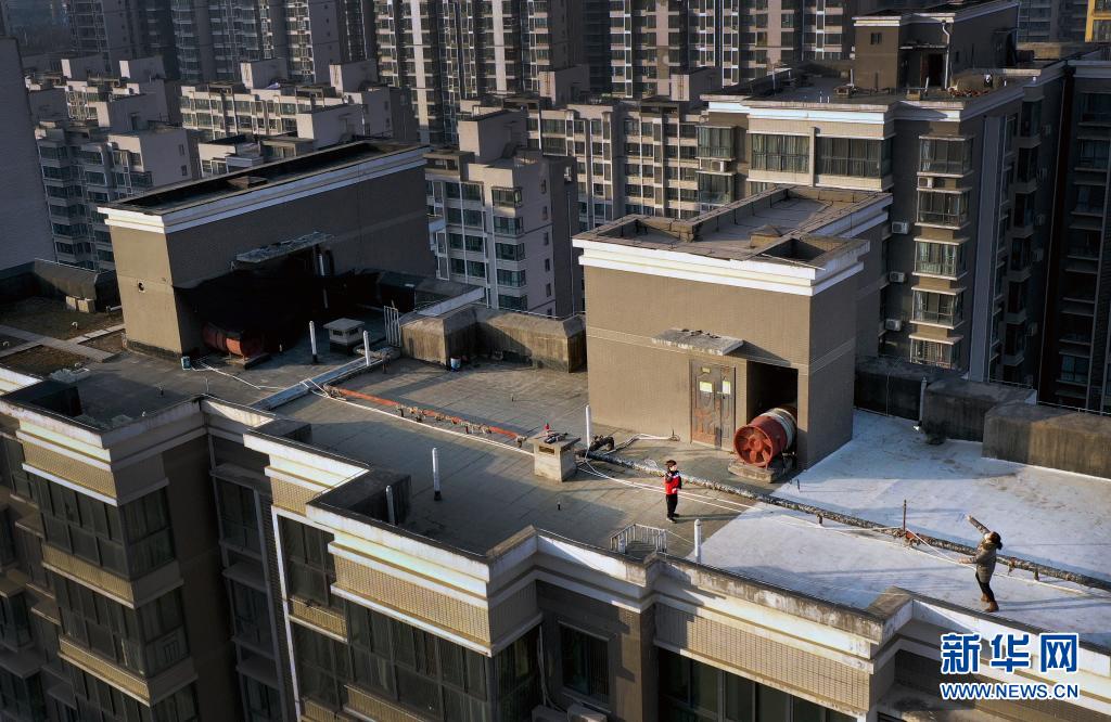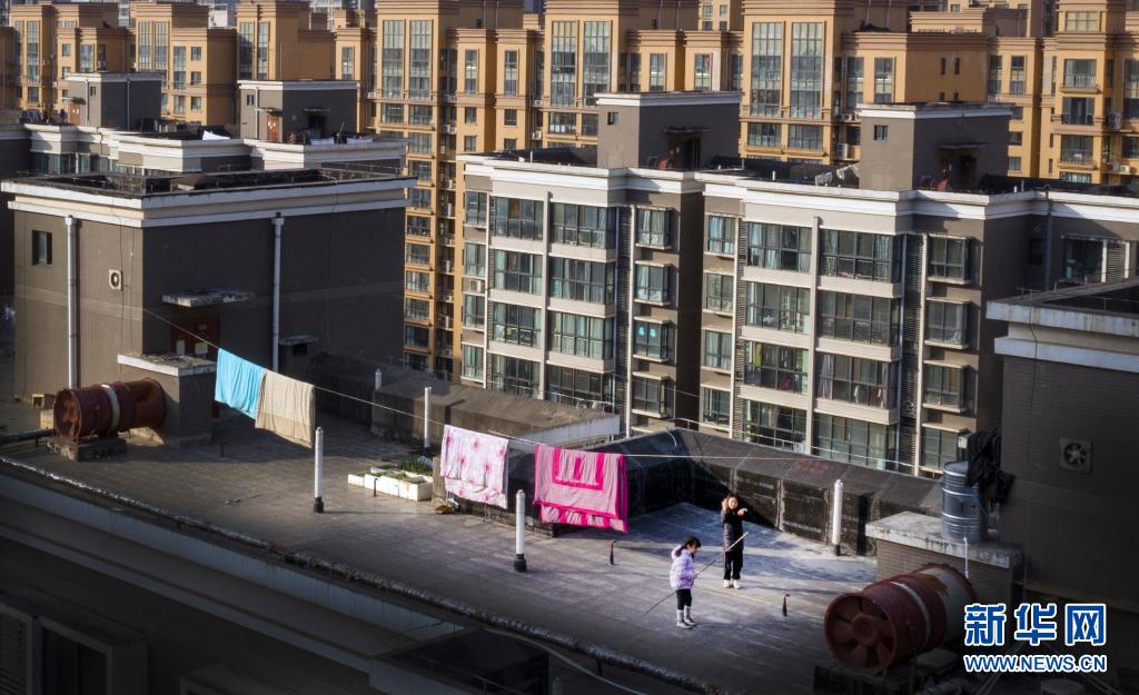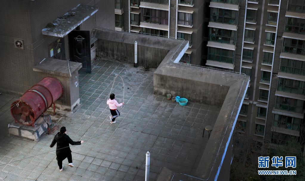 1月14日,西安市一小區(qū)居民在樓頂上跳繩鍛煉(無(wú)人機(jī)照片)。新華社記者 陶明 攝