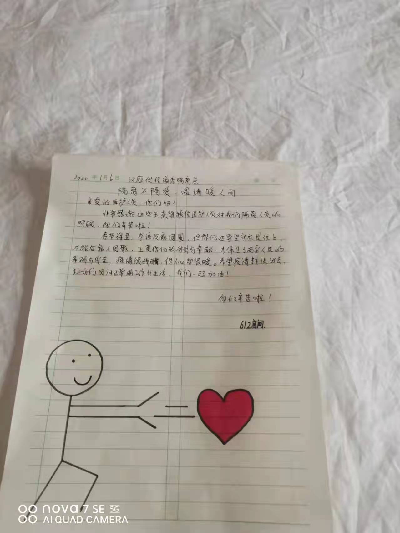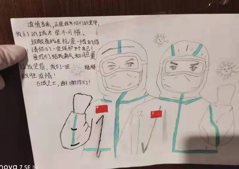 一幅幅手抄報(bào),一封封感謝信,一條條群留言,都在記錄著一個(gè)個(gè)勇毅且溫情的抗疫瞬間。“今天是我被隔離的最后一天,收拾好書包和小行李箱,準(zhǔn)備回家了,看著剩余的水果、零食,此刻心里不止是歡喜和激動(dòng),還有一絲不舍……”一名小學(xué)生在感謝信中寫到:“接到老師的通知,我們要集體隔離,內(nèi)心還有點(diǎn)害怕,不知該怎么辦,來到酒店后,看到張張和藹可親的臉,我的心放下了,你們?yōu)槲覀儾珊怂?、送飯菜,讓我感到溫暖,感謝強(qiáng)大的祖國,我們一定好好學(xué)習(xí),長大做一個(gè)對(duì)社會(huì)有用的人”。據(jù)介紹,隔離期間,有四名12歲的學(xué)生是獨(dú)自隔離,沒有家人的陪護(hù),在工作人員每天的問候中,他們懂事有禮貌,只要求工作人員幫他們打印作業(yè),每天在房間堅(jiān)持看書學(xué)習(xí)。
