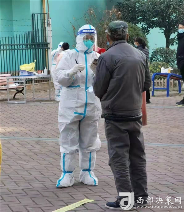 “我年輕,我來(lái)吧”這是劉璐璐說(shuō)的最多的一句話。她所住魚(yú)化寨街道南飛鴻天錦小區(qū)屬雁塔區(qū)的管控區(qū)。每次核酸檢測(cè)從早晨八點(diǎn)就開(kāi)始了,她七點(diǎn)不到就起床,七點(diǎn)半準(zhǔn)時(shí)趕到檢測(cè)現(xiàn)場(chǎng)。那正是最寒冷的時(shí)候,小區(qū)核酸檢測(cè)從管控后幾乎每天都進(jìn)行。她身穿防護(hù)服,頭戴防護(hù)面罩,穿梭在刺骨的寒風(fēng)中,一待就是好幾個(gè)小時(shí)。手凍木了來(lái)回搓搓,腳凍僵了,來(lái)回跑跑,由于戴著眼鏡,加上戴上防護(hù)面罩,不一會(huì)眼鏡上就霧朦朦的,看不清人,只好反復(fù)擦抹。連日來(lái),劉璐璐幫助社區(qū)運(yùn)送物資,統(tǒng)計(jì)數(shù)據(jù),層層樓叫業(yè)主做核酸,由于穿著防護(hù)服,不能多喝水,有時(shí)嗓子都喊得嘶啞。其他志愿者稱(chēng)贊她“小姑娘真能干”,她微微一笑便又繼續(xù)戰(zhàn)斗。