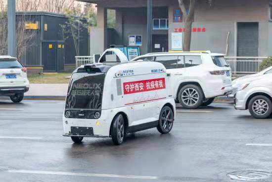 這輛憨態(tài)可掬的白色小車(chē),便是航天基地轄區(qū)企業(yè)——新石器交叉信息核心技術(shù)研究院(西安)有限公司運(yùn)營(yíng)的新石器無(wú)人車(chē)。為了減輕封控管理小區(qū)物資保障壓力,1月10日,在航天基地與該公司的密切配合下,新石器無(wú)人車(chē)在航天基地正式上崗,打通了便利店到社區(qū)配送的“最后一米”。