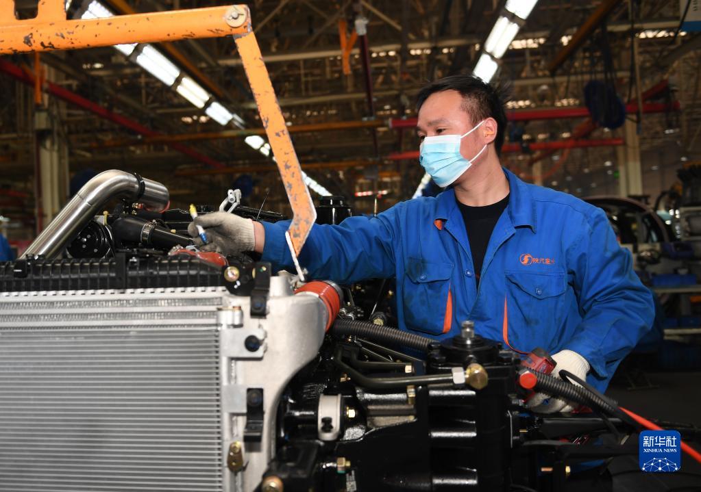 1月20日,工人在陜西汽車控股集團有限公司總裝車間進行重型卡車裝配。新華社記者 李一博 攝