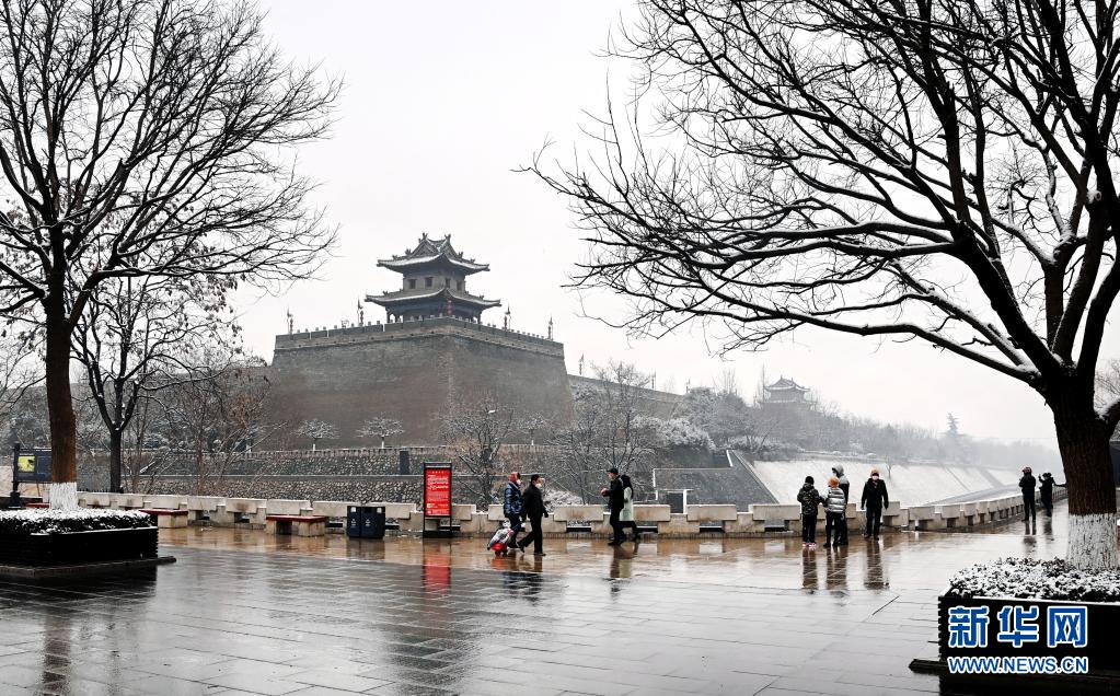 1月23日,市民在古城墻下休閑散步。