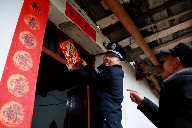 今年得知張有學(xué)的兒子、兒媳由于疫情原因可能不回家過年,家里就兩位80多歲的老人和孫女在家。在1月25日小年這天,王鵬提前給老人準(zhǔn)備好了年貨,帶著民警來張有學(xué)家?guī)兔?。在張有學(xué)家里,王鵬和老人搭伙貼好了新年對聯(lián)、幫老人整理好柴火,所里的年輕民警也主動和小慧姐妹溝通學(xué)習(xí)情況,為她們的學(xué)習(xí)加油鼓勁。
