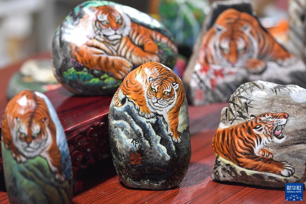 農(nóng)歷虎年將至,陜西省西安市鄠邑區(qū)的農(nóng)民畫家以石材為畫布,創(chuàng)作虎主題作品迎接新春佳節(jié)。