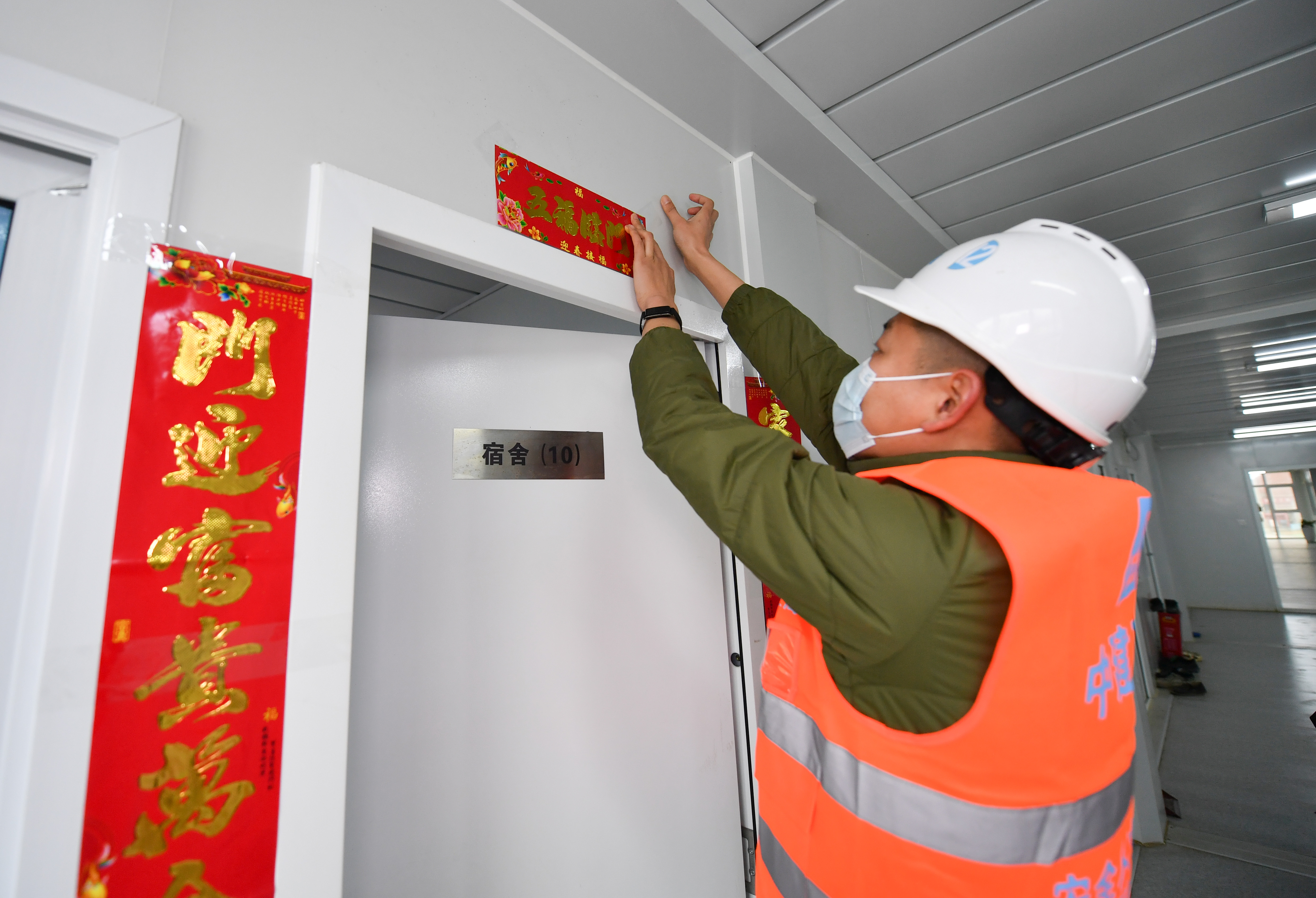 當(dāng)日是農(nóng)歷臘月二十八,在陜西省西安市第一實(shí)驗(yàn)學(xué)校建設(shè)項(xiàng)目工地,留守工地的建設(shè)者用貼春聯(lián)、掛燈籠等方式,迎接佳節(jié)的到來(lái)。