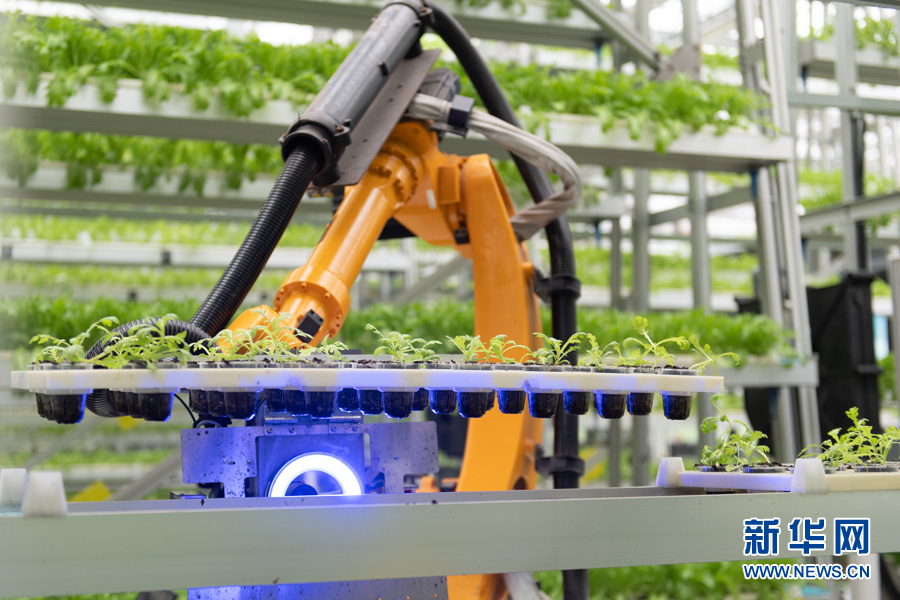 工廠內(nèi)的蔬菜栽培,采用了智能化立體式栽培技術(shù),韭菜、茼蒿等原來長在地里的蔬菜,如今長在種植架上,產(chǎn)量較傳統(tǒng)露地栽培也可以增產(chǎn)數(shù)倍以上。從“一粒種子到一顆菜”實(shí)現(xiàn)全程無人化作業(yè),施肥由智能化計(jì)算管控,農(nóng)活由機(jī)器人承包。