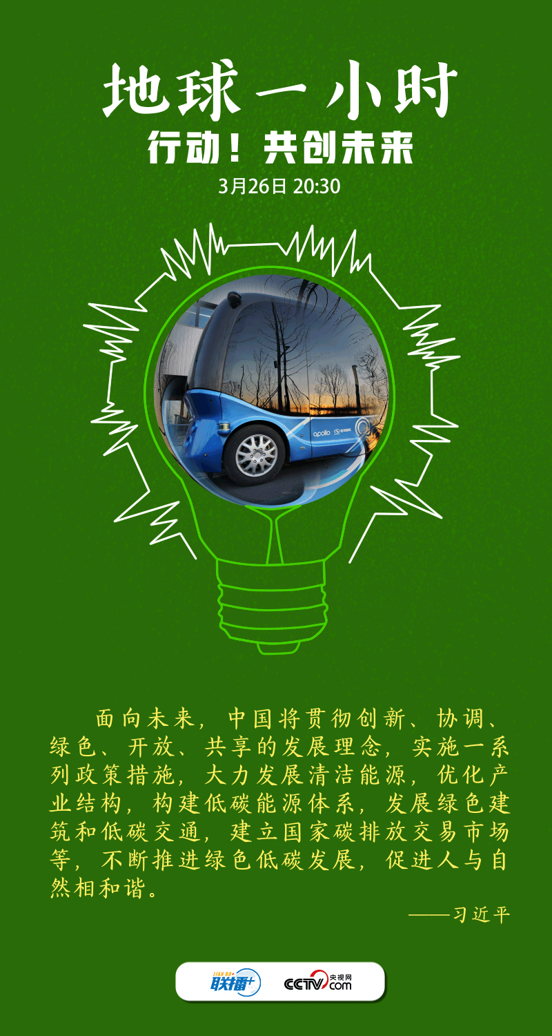 聯(lián)播+2022年3月26日是“地球一小時”活動日。今年的主題是“行動!共創(chuàng)未來”,呼吁世界各國在2030年之前,就自然保護、氣候變化和可持續(xù)發(fā)展等達成全球合作,讓自然向好,讓人類受益。