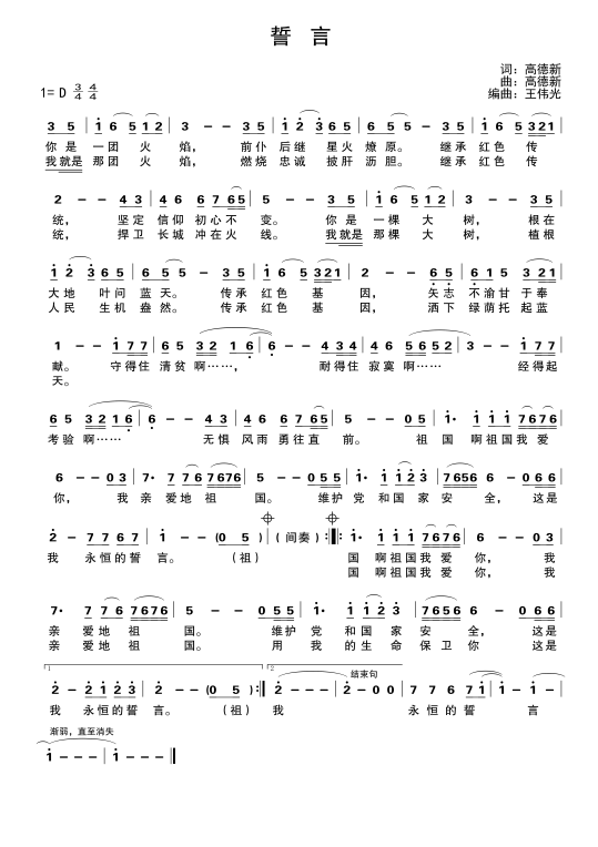 慶祝建黨百年獲獎(jiǎng)歌曲作品選集——《誓言》歌詞。