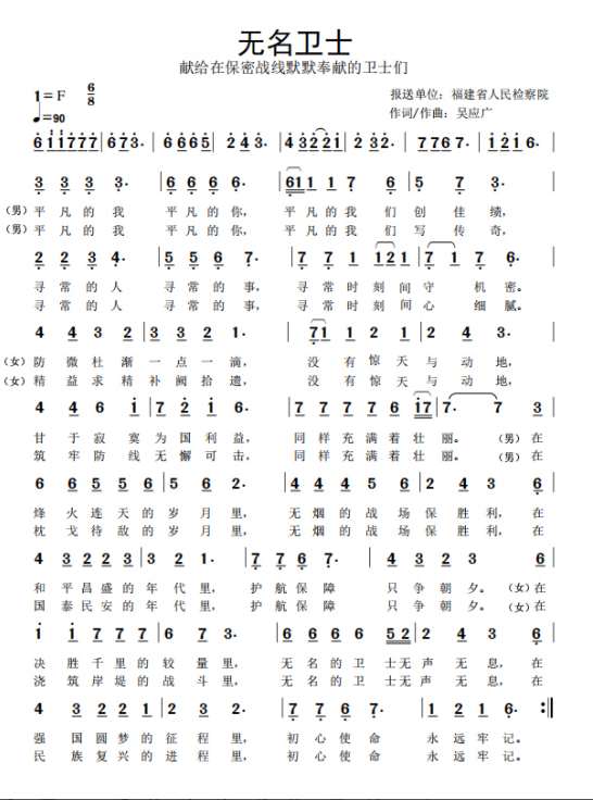 慶祝建黨百年獲獎(jiǎng)歌曲作品選集——《無名衛(wèi)士》歌詞。