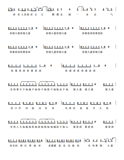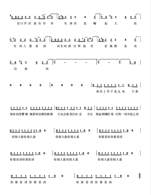 慶祝建黨百年獲獎歌曲作品選集——《保密之歌》詞曲。