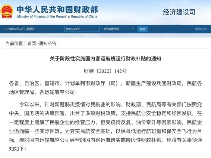 記者26日了解到,財政部、民航局日前發(fā)布通知,自2022年5月21日至2022年7月20日,對國內(nèi)運輸航空公司經(jīng)營的國內(nèi)客運航班實施階段性財政補貼。原則上當每周內(nèi)日均國內(nèi)客運航班量低于或等于4500班(保持安全運行最低飛行航班數(shù))時,啟動財政補貼。對國內(nèi)客運航班實際收入扣減變動成本后的虧損額給予補貼。設(shè)定最高虧損額補貼標準上限為每小時2.4萬元。(記者申鋮、周圓)