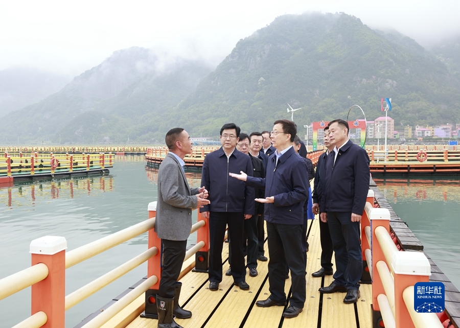 5月23日至24日,中共中央政治局常委、國務(wù)院副總理韓正在福建寧德、福州、漳州調(diào)研。這是5月23日,韓正在福安“藍(lán)海漁歌”海上綜合整治展示平臺調(diào)研。新華社記者 丁林 攝