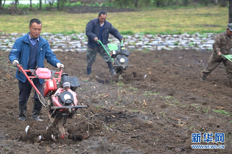3月25日,冷水鎮(zhèn)玉龍村村民正在用農(nóng)機犁地,準(zhǔn)備播種高山反季節(jié)蔬菜。新華網(wǎng) 耿駿宇 攝