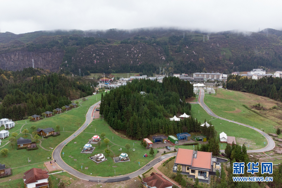 從空中航拍重慶高速冷水服務(wù)區(qū)生態(tài)旅游自駕營地。新華網(wǎng) 耿駿宇 攝