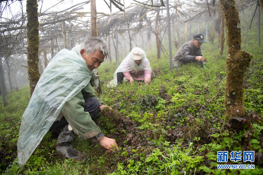 圖為村民在石柱縣冷水鎮(zhèn)玉龍村黃連種植基地內(nèi)對黃連進(jìn)行管護(hù)。新華網(wǎng) 耿駿宇 攝