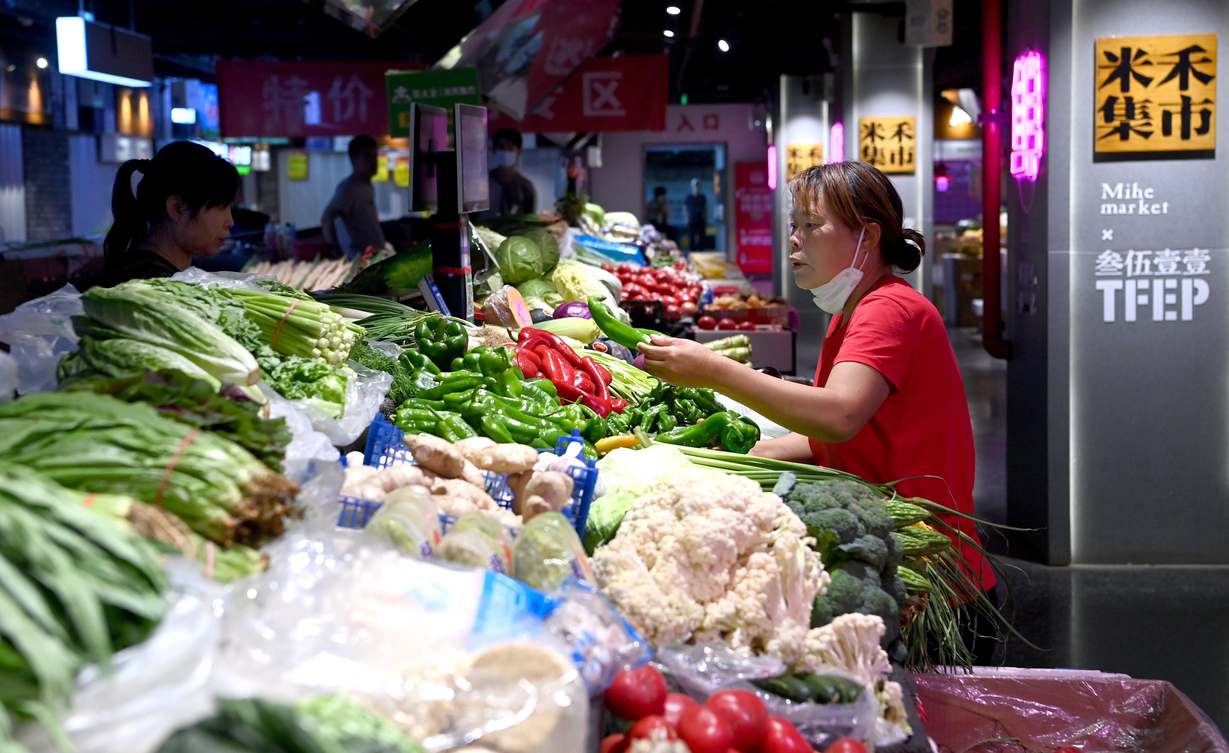 市民在西安際華3511文創(chuàng)科技園內(nèi)的集市購物(5月20日攝)。 新華社記者 劉瀟 攝