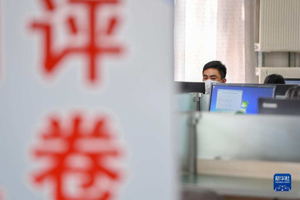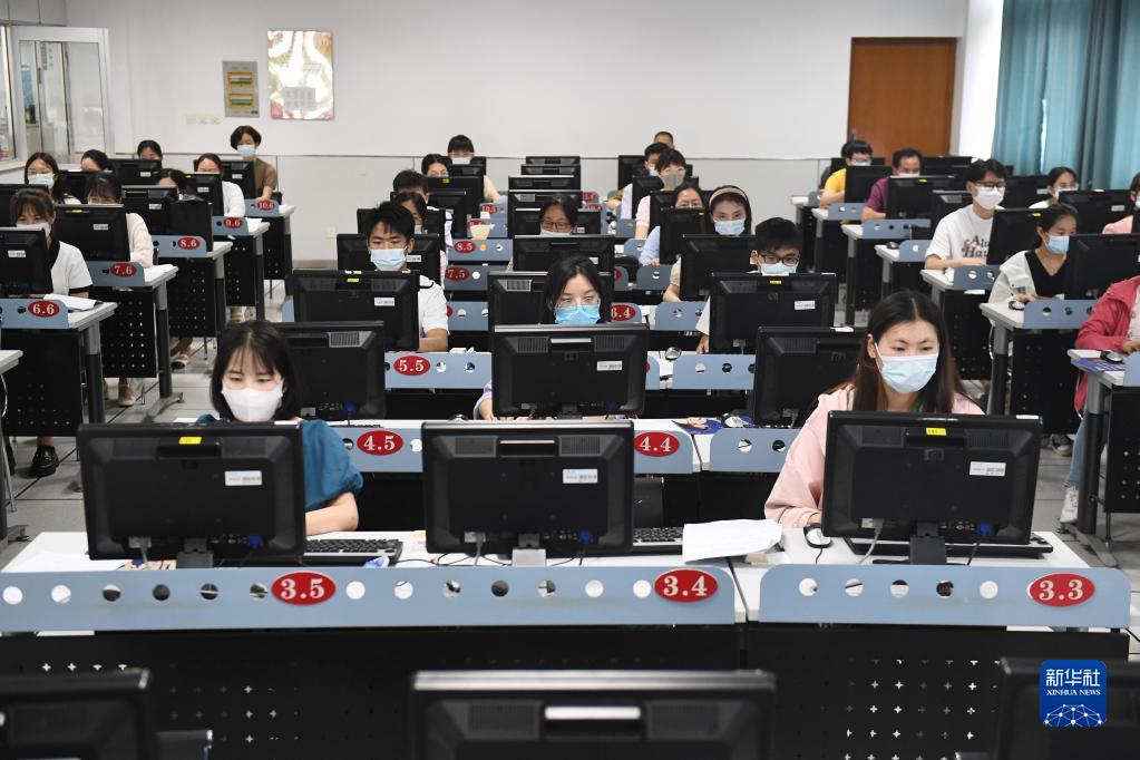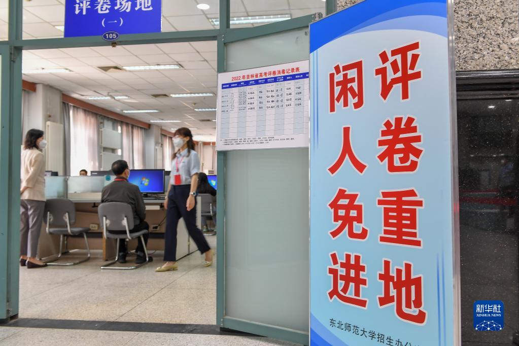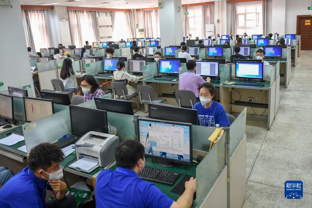 6月14日,在位于吉林長(zhǎng)春的東北師范大學(xué)高考網(wǎng)上評(píng)卷點(diǎn),工作人員在評(píng)卷。據(jù)了解,2022年吉林省高考評(píng)卷工作全部采用電子掃描、網(wǎng)上評(píng)卷方式進(jìn)行。新華社記者 張楠 攝