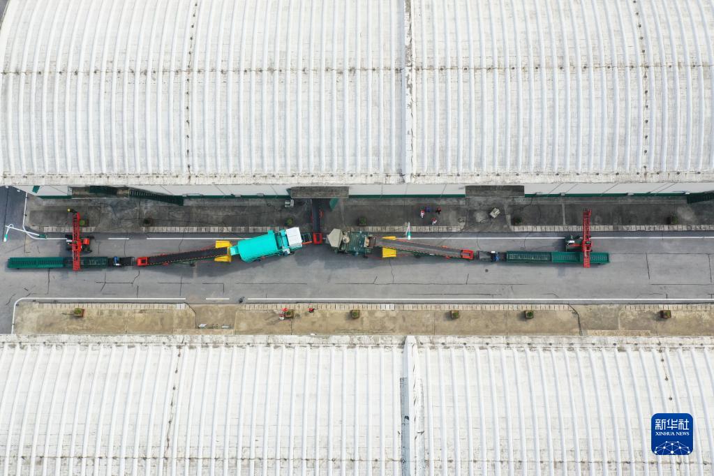 5月24日,在中央儲(chǔ)備糧鄧州直屬庫(kù)有限公司內(nèi),糧食入庫(kù)全套流程設(shè)備已架設(shè)完畢(無(wú)人機(jī)照片)。新華社記者 張浩然 攝