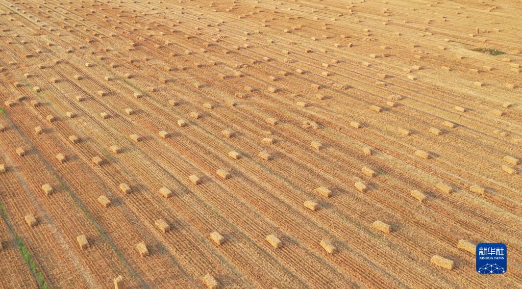 這是6月8日在河南省安陽(yáng)市滑縣小鋪鄉(xiāng)界河路村拍攝的打捆的麥秸(無(wú)人機(jī)照片)。新華社記者 張浩然 攝
