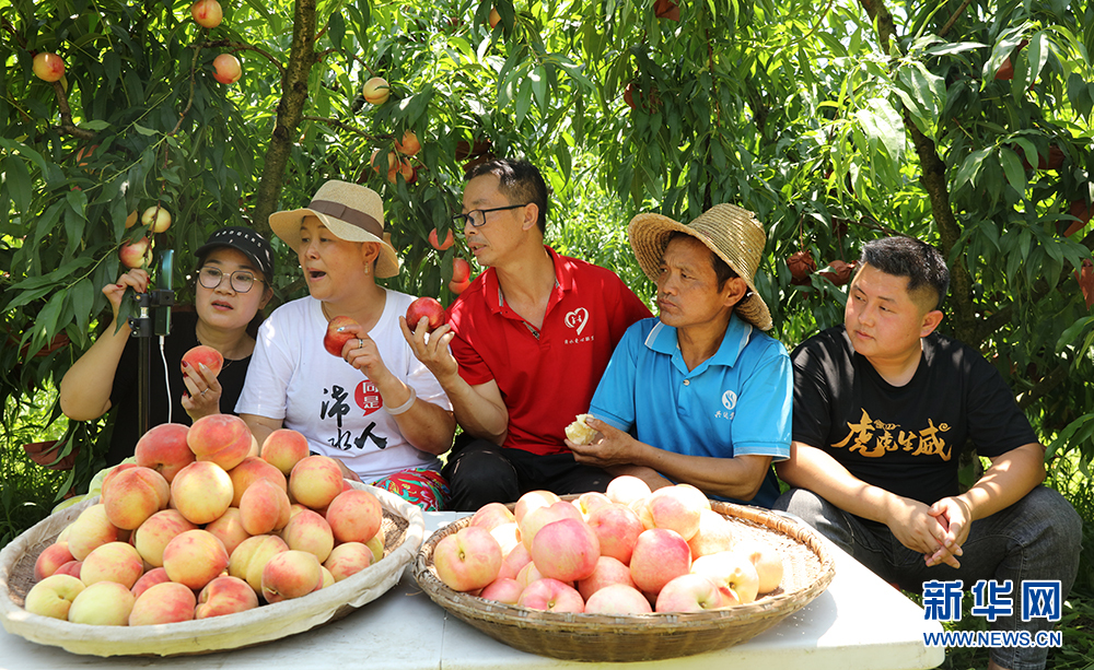 圖為黃岡市浠水縣“網(wǎng)紅”主播幫果農直播銷售水蜜桃。新華網(wǎng)發(fā)