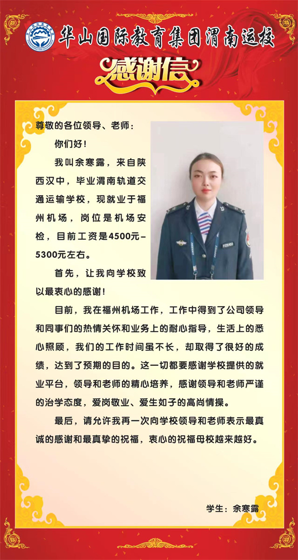 安置到福州機(jī)場(chǎng)的我校優(yōu)秀畢業(yè)生余寒露