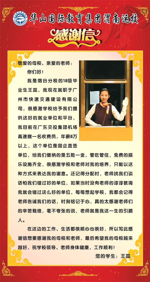 安置到廣東國企高速的我校優(yōu)秀畢業(yè)生沈煒,在單位現(xiàn)任管理崗位督導(dǎo)員,年薪10萬以上