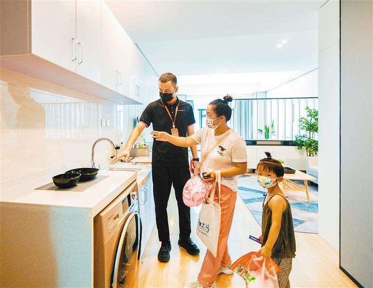 來(lái)自甘肅的潘先生,家里有個(gè)24歲的女兒,剛剛工作才兩年,一直都是租房住,安全問(wèn)題是他最擔(dān)心的。聽(tīng)說(shuō)這里的保障性租賃住房是政府項(xiàng)目,跟市面上的租賃住房相比,這里的房租更低,質(zhì)量上也更有保障,潘先生很感興趣,在看過(guò)樣板間后,讓女兒盡快拎包入住的想法更加強(qiáng)烈。“這里房間干凈整潔、安全性好,全天都有保安值守,孩子住這我心里很踏實(shí)。”潘先生說(shuō)。