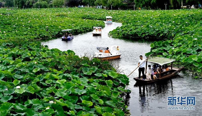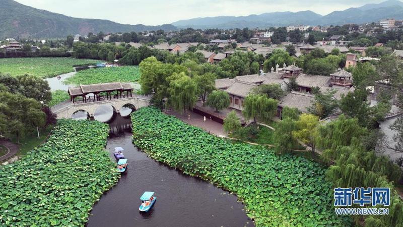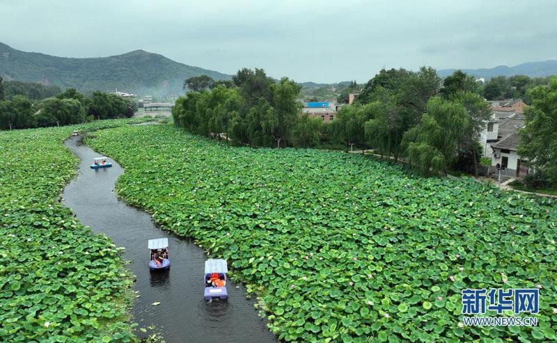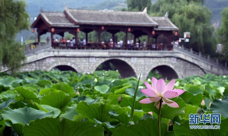 近日,秦嶺深處的陜西省商洛市丹鳳縣棣花古鎮(zhèn)荷花盛開,吸引游人前來觀賞。(