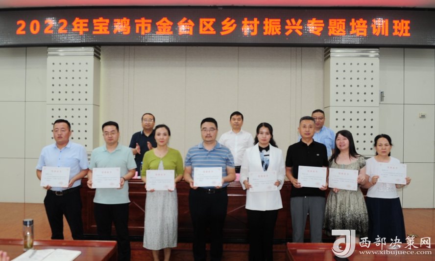 西部決策網(wǎng)訊 8月6日下午,為期三天的“2022年寶雞市金臺區(qū)鄉(xiāng)村振興專題培訓(xùn)班”結(jié)束了!60余學(xué)員順利的拿到了結(jié)業(yè)證。寶雞文理學(xué)院經(jīng)濟管理學(xué)院院長、陜西鄉(xiāng)村振興研究中心主任劉輝;金臺區(qū)政府副區(qū)長郭小軍出席了結(jié)業(yè)儀式。參加結(jié)業(yè)儀式的還有金臺區(qū)鄉(xiāng)村振興局主要負(fù)責(zé)人、分管領(lǐng)導(dǎo),各鎮(zhèn)涉農(nóng)街道黨(工)委書記和鄉(xiāng)村振興工作分管領(lǐng)導(dǎo),區(qū)委實施鄉(xiāng)村振興戰(zhàn)略領(lǐng)導(dǎo)小組和區(qū)委抓黨建促鄉(xiāng)村振興領(lǐng)導(dǎo)小組各成員單位分管領(lǐng)導(dǎo)。結(jié)業(yè)儀式由金臺區(qū)鄉(xiāng)村振興局局長鄭偉平主持。