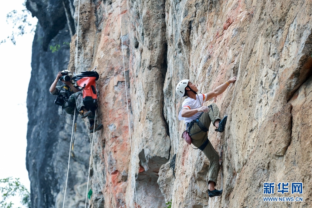 攀巖愛好者正在攀巖。新華網(wǎng)發(fā) 黃羽 攝