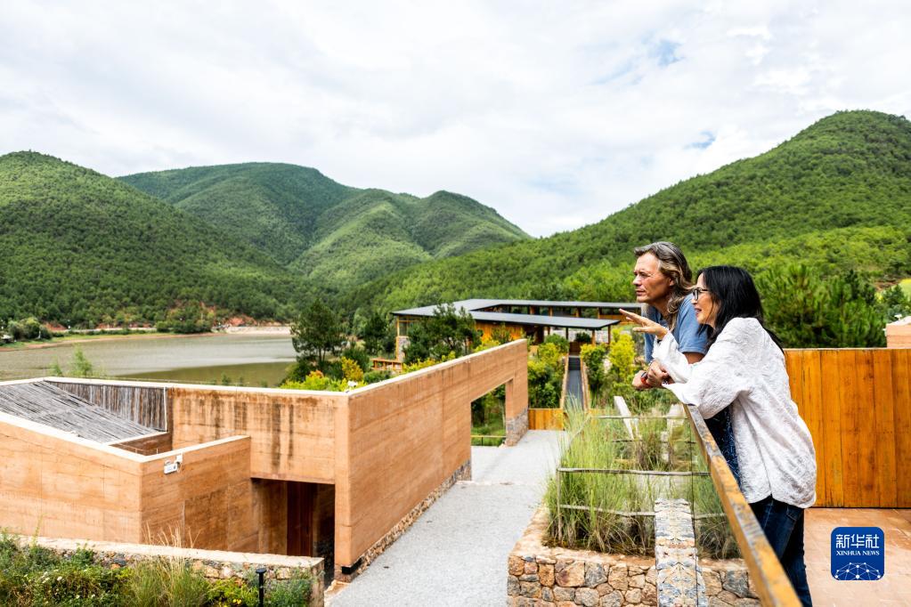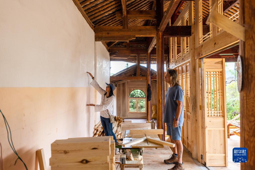 8月31日,林登和妻子瑾妮在沙溪鎮(zhèn)石龍村討論鄉(xiāng)村圖書館的設(shè)計(jì)。新華社記者 曹夢(mèng)瑤 攝
