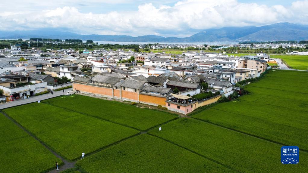 這是8月27日拍攝的云南省喜洲古鎮(zhèn),近處為喜林苑(無人機(jī)照片)。新華社記者 曹夢(mèng)瑤 攝