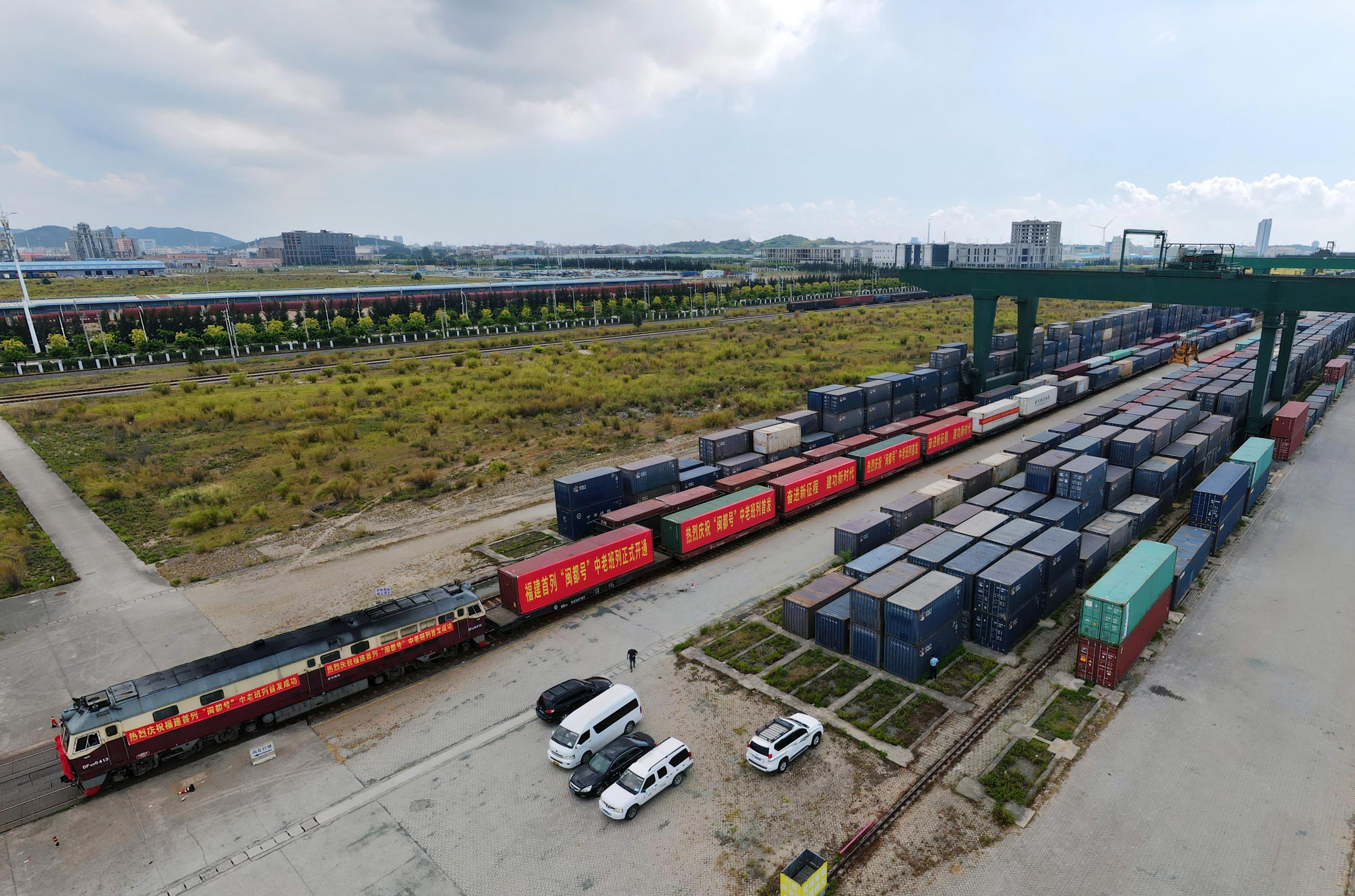 △2022年8月31日,福建首趟中老鐵路國(guó)際貨運(yùn)列車從福州江陰港站開出。