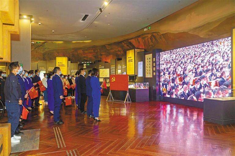 10月16日,西安博物院黨員干部群眾一起收看黨的二十大開幕會。記者 戴吉坤攝