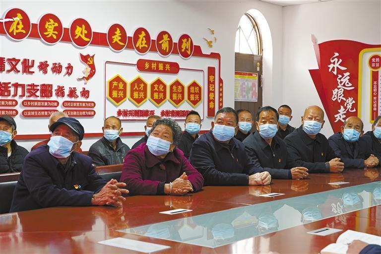 10月16日,延川縣文安驛鎮(zhèn)梁家河村黨員干部群眾在村黨支部集體收看黨的二十大開幕會。記者 王姿頤攝