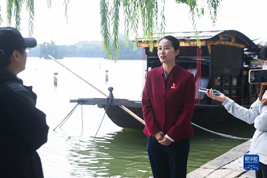 10月16日,在浙江省嘉興市,南湖革命紀念館講解員張一在接受采訪。新華社記者 徐昱 攝