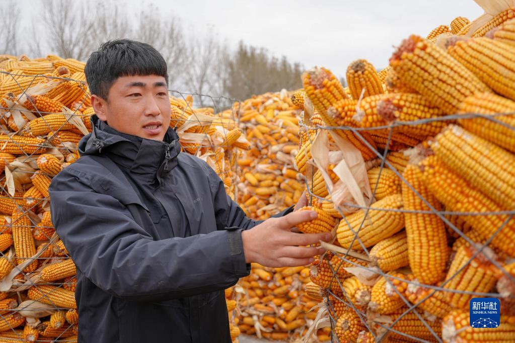 10月17日,在吉林省梨樹縣梨樹鎮(zhèn)八里廟村一家農機農民專業(yè)合作社,負責人馬云秋在整理玉米。新華社發(fā)(程禹然 攝)