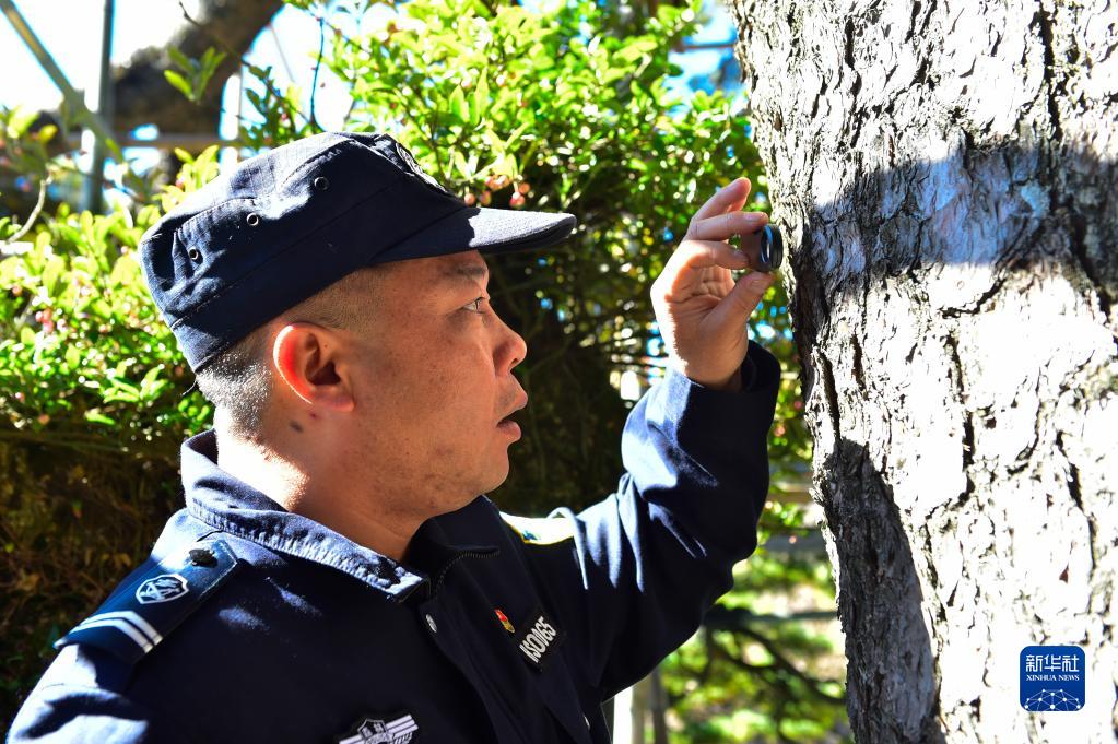 “拿著放大鏡檢查樹干的樹皮,再爬上腳手架查看樹的冠頂和冠幅是我每天的工作,別人也許會認為這很枯燥,但是我為自己能夠參與并見證著祖國天更藍、山更綠、水更清的轉變而自豪。”胡曉春說,“總書記在二十大報告中提出‘尊重自然、順應自然、保護自然’,我要落實到行動上,為建設美麗中國貢獻自己的力量。”