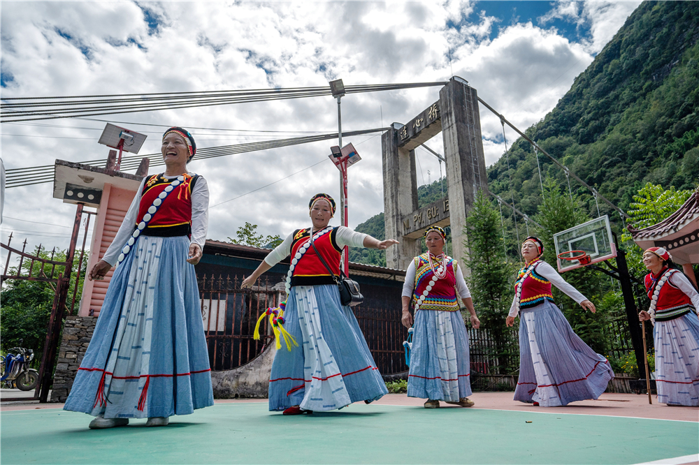 云南省怒江州福貢縣石月亮鄉(xiāng)拉瑪?shù)状宕迕褡园l(fā)組成的“奮進合唱團”在村委會排練節(jié)目(2022年9月14日攝)。2020年,怒江州26.96萬貧困人口全部脫貧,249個貧困村全部出列,4個貧困縣(市)全部摘帽。新華社記者 江文耀 攝