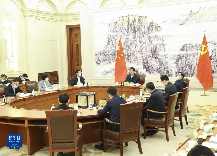全國(guó)人大常委會(huì)黨組副書記王晨,全國(guó)人大常委會(huì)黨組成員曹建明、張春賢、沈躍躍、吉炳軒、艾力更·依明巴海、王東明、白瑪赤林、楊振武參加會(huì)議。