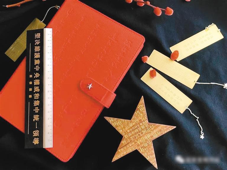 文創(chuàng)精品“紅寶”套裝,包括筆記本、便簽夾、直尺、金屬書簽和紙膠帶等五件產(chǎn)品。此套文創(chuàng)產(chǎn)品榮獲國家知識產(chǎn)權(quán)局頒發(fā)的國家外觀設計專利證書,“紅”字代表“紅軍”“紅色圣地”,“寶”字代表“中國革命之瑰寶”。紅寶用現(xiàn)代語言講述紅色故事,強化紅色文化,傳承紅色精神。以新時代背景下的紅色精神號召全民堅定意志,勇往直前,為實現(xiàn)中華民族偉大復興的中國夢而不懈奮斗。