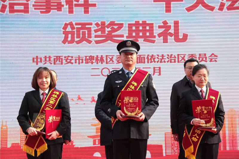 2月14日上午,西安市碑林區(qū)委全面依法治區(qū)委員會主辦的碑林區(qū)第二屆“十大法治事件”“十大法治人物”頒獎(jiǎng)典禮在鐘樓廣場前隆重舉行。西安市公安局碑林分局成功偵辦的特大網(wǎng)絡(luò)賭博案以及公安碑林分局太白路派出所所長丁保健分別榮獲“十大法治事件”和“十大法治人物”。此外,作為依法治區(qū)委員會成員單位,公安碑林分局在現(xiàn)場通過設(shè)置、案例解讀、現(xiàn)場互動解答的方式進(jìn)行了反詐以及普法宣傳活動。