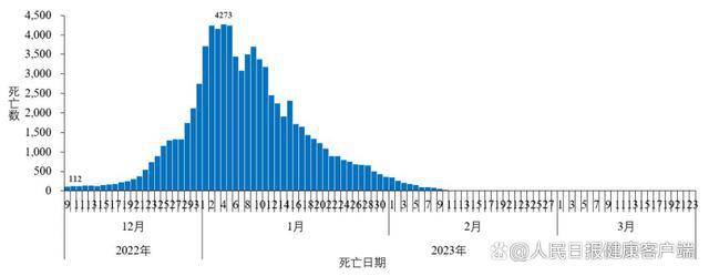 在院新冠病毒感染死亡病例數(shù)方面,于1月4日達到每日峰值4273例,隨后持續(xù)下降,3月23日為0例。3月17日至 3月23日,31個?。ㄗ灾螀^(qū)、直轄市)及新疆生產(chǎn)建設(shè)兵團醫(yī)療機構(gòu)累計在院新冠病毒感染相關(guān)死亡病例 0 例。