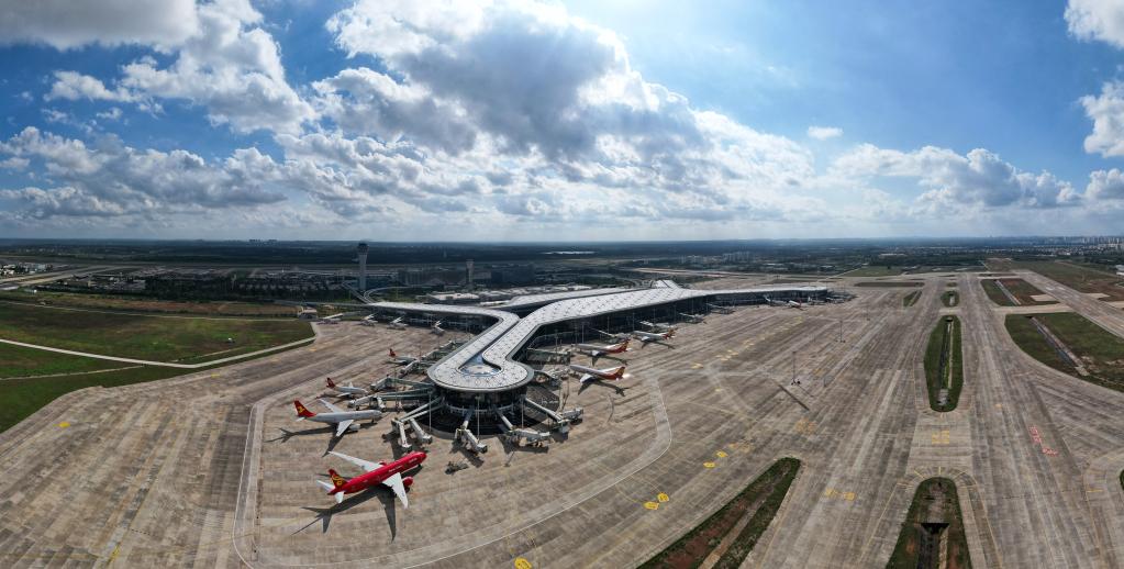 這是2021年11月20日拍攝的海口美蘭國(guó)際機(jī)場(chǎng)二期項(xiàng)目(無(wú)人機(jī)照片)。新華社記者 楊冠宇 攝