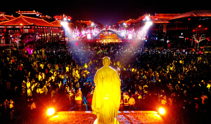 西安大唐不夜城步行街區(qū)的玄奘廣場。新華社記者 劉瀟 攝