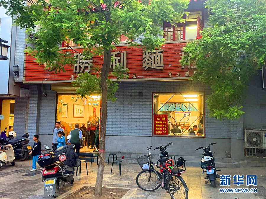 傍晚時分,勝利面莊不時還有食客出出進(jìn)進(jìn)。新華網(wǎng) 楊喜龍 攝